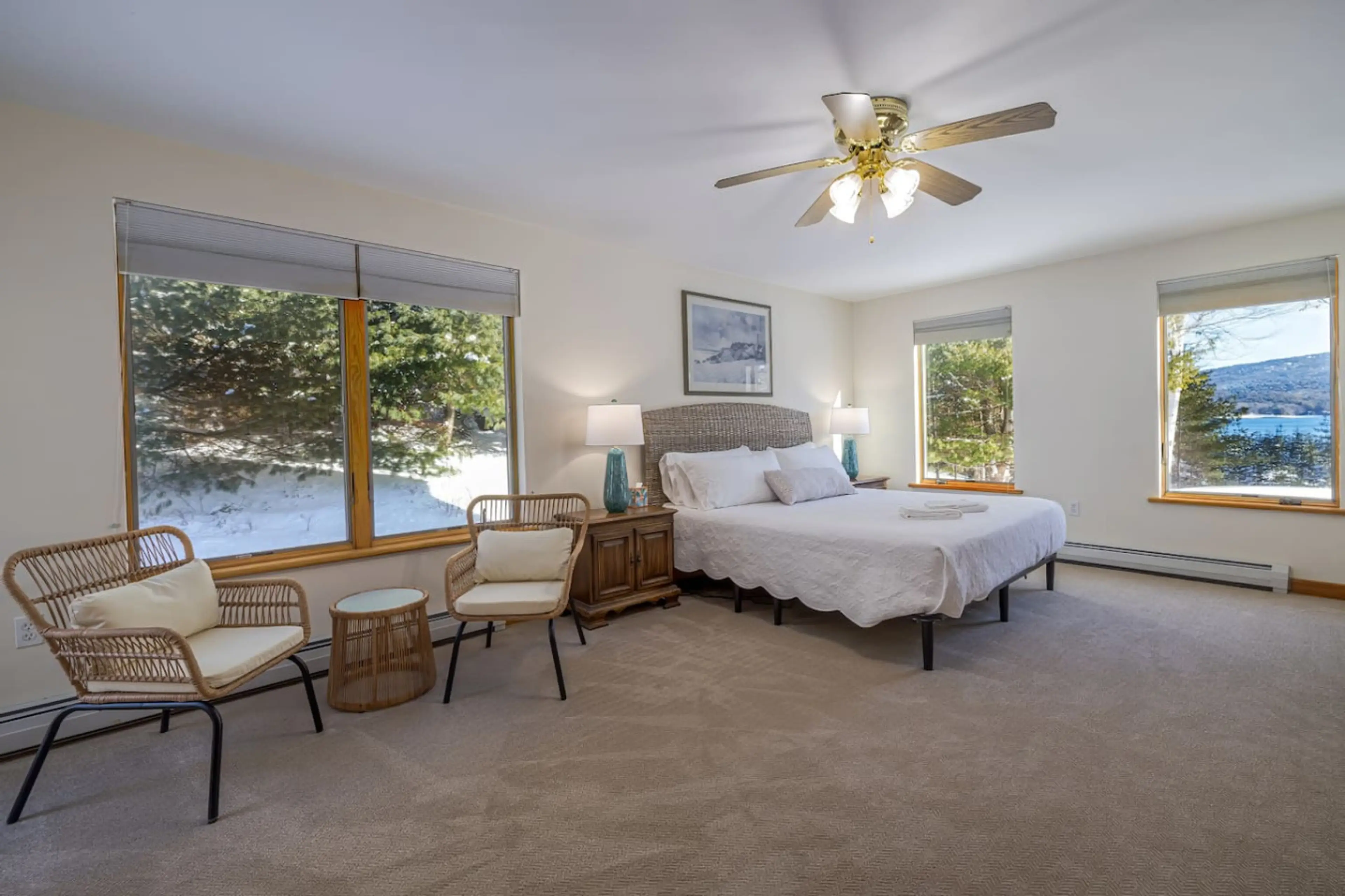Sound View is a spacious home that is located near the top of Somes Sound. The deck area is being renovated and upgraded this Winter! New Photos Spring 2026! The house has many large windows, tall ceilings, and skylights that allow a ton of natural light to come in and helps make the home feel very ...
